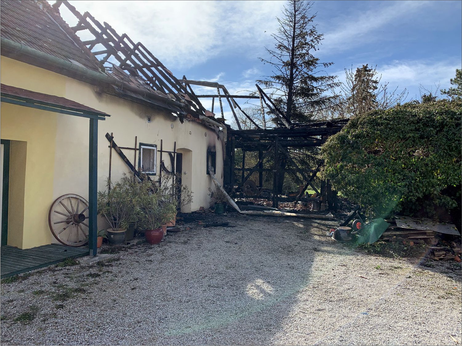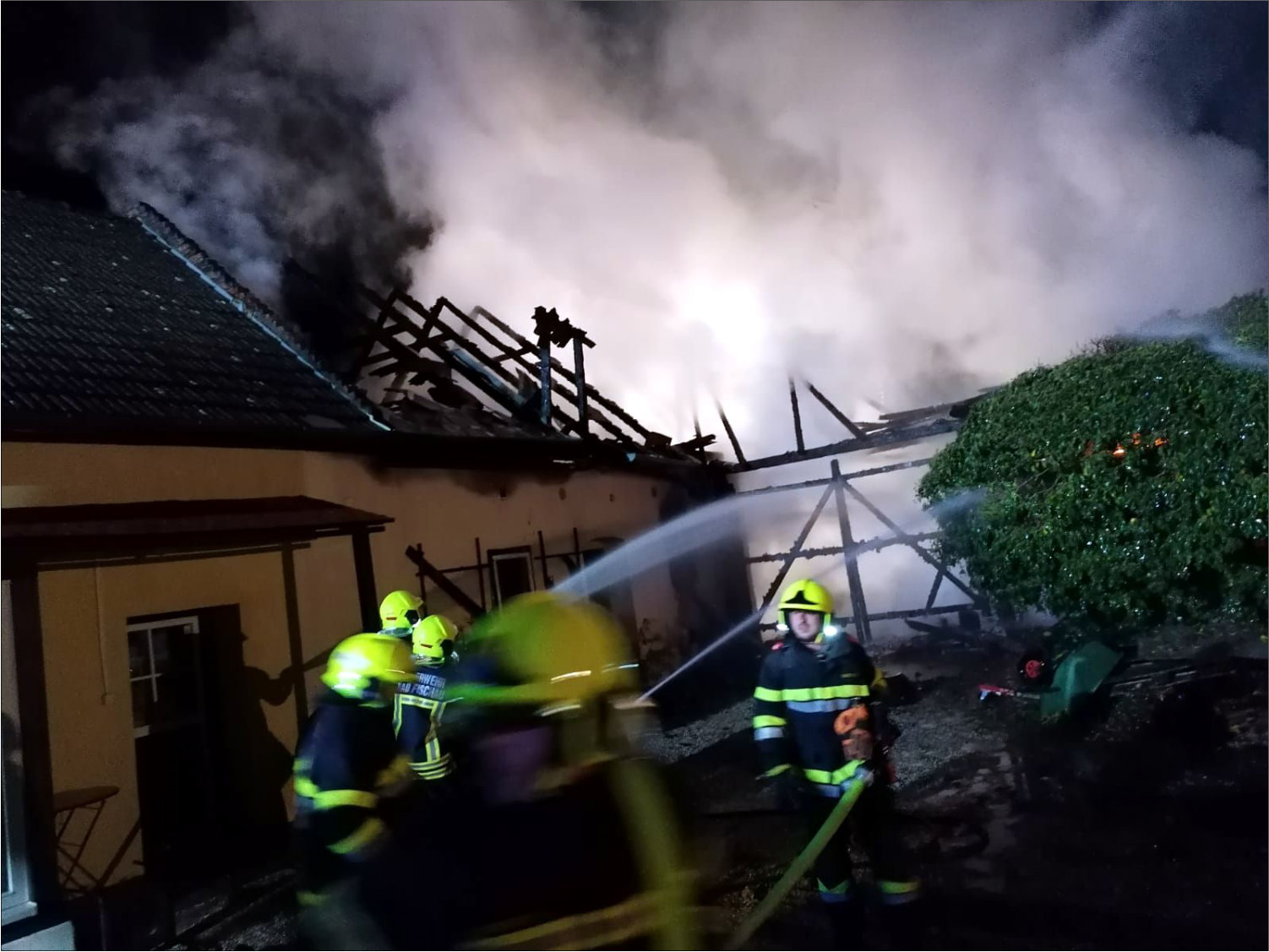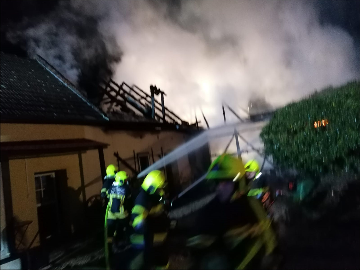 Einsatz am 11.04.2021BrandeinsatzAm 11-04-2021wurden wir um 22:35 Uhr zu einem Brandeinsatz der Stufe B2 mit der Einsatzadresse Hanuschgasse alarmiert. Schon am Anfahrtsweg, welcher am Brandobjekt vorbeiführte, konnten sich die Kameraden schon ein Bild des Ausmaßes machen. Innerhalb kurzer Zeit konnten Löschangriffe von der Innenseite und Außenseite vorgenommen werden. Auch die Wasserversorgung spielte auf unserer Seite, da direkt vor der Haustür ein Hydrant steht und auf der Gartenseite der Fischabach vorbeiführt. Nach kurzer Zeit erhielten wir noch Unterstützung der FF Brunn (wird bei B2 mitalarmiert) und der nachdisponierten FF Weikersdorf. Ca. 23:00 war der Brand soweit unter Kontrolle, das ein übergreifen an das angrenzende Gebäude und gegenüberliegende Objekte verhindert werden konnte. Im Zuge der Lösch und Nachlöscharbeiten wurden wir noch zu einem TUS Alarm bei der Firma Hornbach alarmiert, was sich glücklicher Weise nur als Fehlalarm entpuppte. Die Löschangriffe und Nachlöscharbeiten mussten teilweise unter schwerem Atemschutz durchgeführt werden. Kurz vor Mitternacht konnte dann Brand AUS gegeben werden. Die FF Brunn und FF Weikersdorf konnten kurz vor 01:00 Uhr wieder ins Gerätehaus einrücken. Unsere weiteren Aufgaben bestanden nun darin, den Brandursachenermittler bei seiner Aufgabe zu unterstützen, was in weiterer Folge zu einem Einsatz der Drogenfahndung führte. Die Straße im Bereich der einsturzgefährdenden Giebelmauer musste bis auf weiteres gesperrt werden. Der Einsatz endete um ca. 04:00 Uhr, glücklicher Weise blieb es „NUR“ bei enormen Sachschäden und es wurden keine Personen verletzt.Auch unser neuer Bezirksfeuerwehrkommandant machte sich ein Bild der Lage.Danke an Alle eingesetzten Blaulichtorganisationen für die gute Zusammenarbeit.Eingesetzt:FF Bad Fischau 3 FahrzeugeFF Brunn 2 FahrzeugeFF Weikersdorf 2 Fahrzeuge Polizei RettungBericht: (M.Mannsberger)Fotos: (FF Bad Fischau)