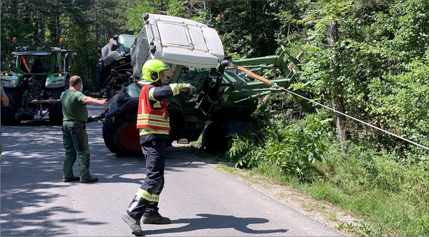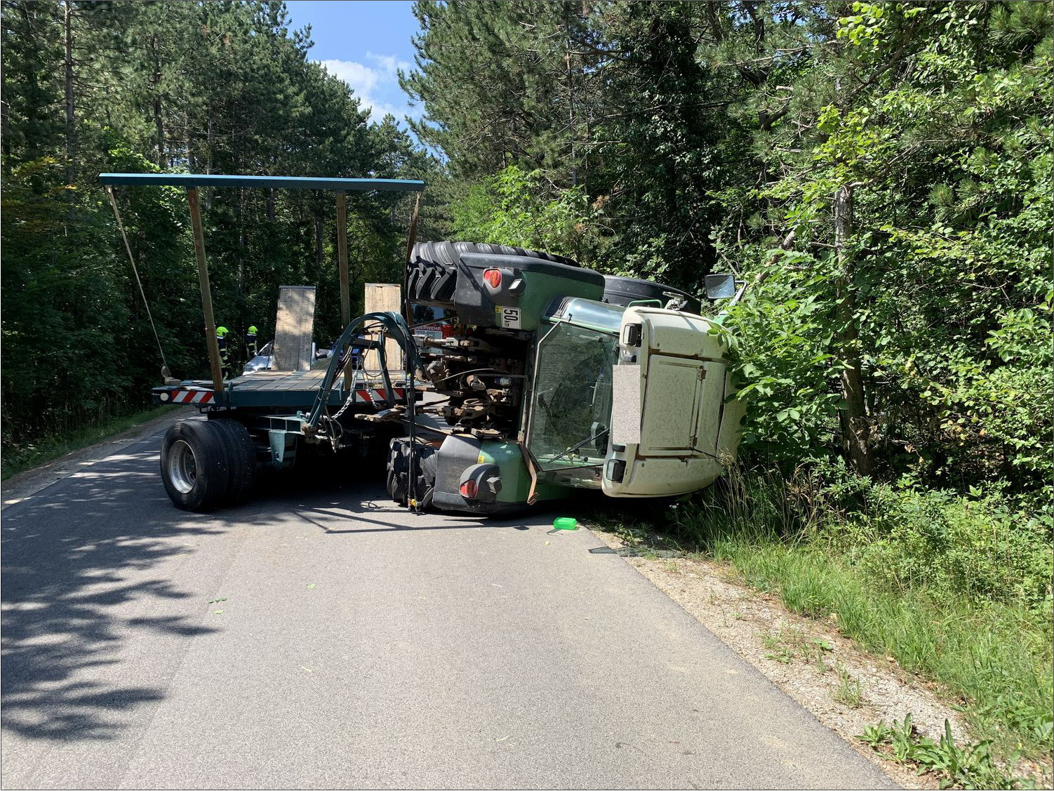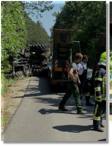 Einsatz am 21.07.2021LKW BergungAm 21.07.2021 wurden wir um kurz vor 14:00 Uhr zu einer LKW Bergung auf die Dreistetterstraße alarmiert. Aus ungeklärter Ursache kippe ein Traktor mit Anhänger um, wobei die Zugmaschine auf der rechten Fahrbahnseite zu liegen kam. Gemeinsam mit der FF Dreistetten sicherten wir die Unfallstelle ab, hängten den Anhänger ab und stellten den Traktor mittels einer 2. Zugmaschine wieder auf die Räder. Der Lenker des Fahrzeuges blieb glücklicher Weise unverletzt. Für die Dauer des Einsatzes musste die Dreistetterstraße in beide Fahrtrichtungen gesperrt werden.Eingesetzt:FF Bad Fischau 2 FahrzeugeFF Dreistetten 2 FahrzeugePolizeiRettungBericht: (M.Mannsberger)Fotos: (FF Bad Fischau)