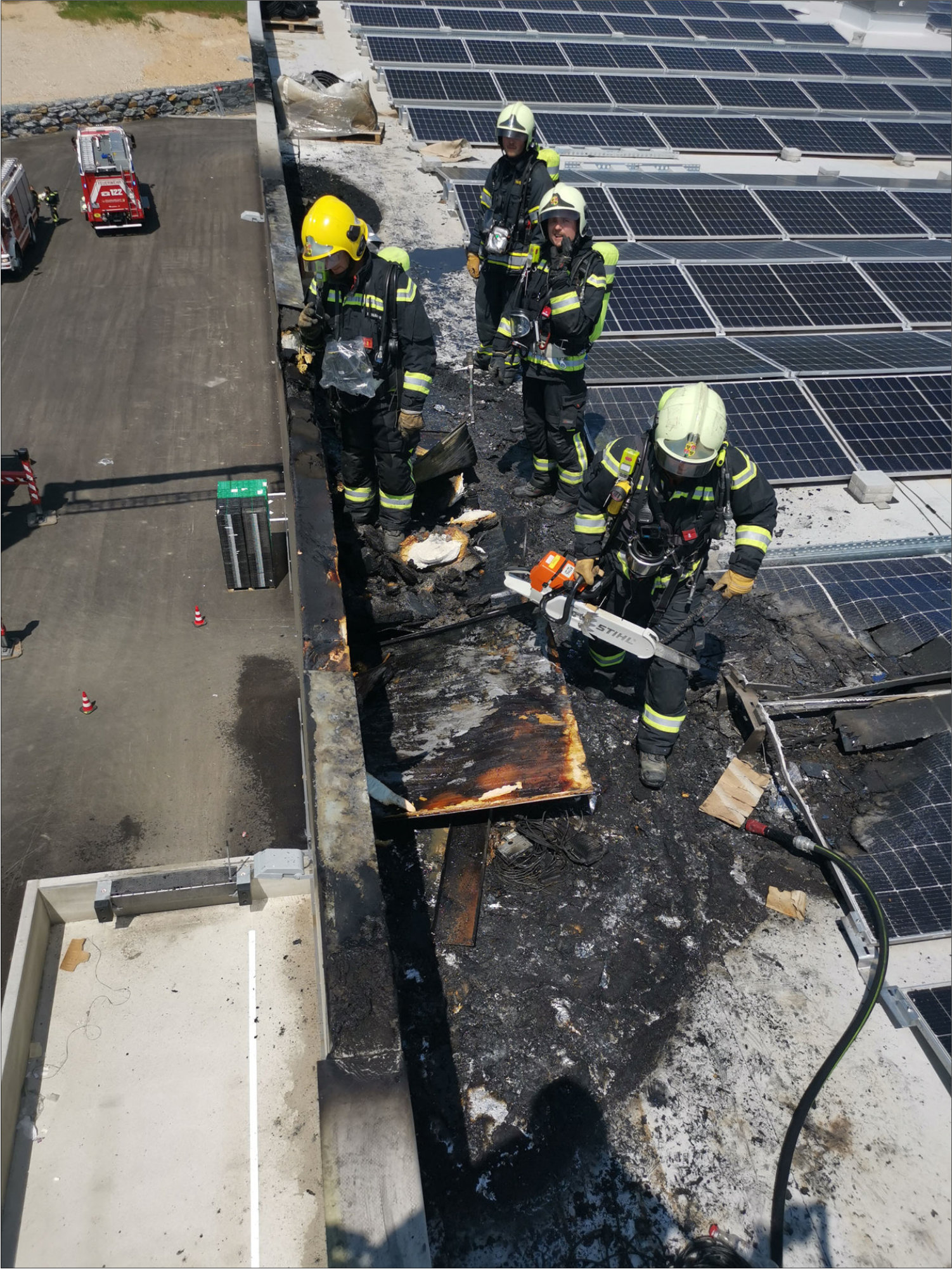 Heute Vormittag, kurz nach 11 Uhr, wurden wir zu einem Brandverdacht ins Gewerbegebiet Bad Fischau alarmiert. Wie sich schnell herausstellte war es kein Fehlalarm und es wurden die Feuerwehren Brunn a.d. Schneebergbahn, Wöllersdorf, Steinabrückl, Weikersdorf und Wiener Neustadt nach alarmiert. So standen zur Brandbekämpfung Innerhalb kurzer Zeit knapp 90 Feuerwehrfrauen und Männer zur Unterstützung bereit. Mit Hilfe des Hubrettungsgeräts der FF Wr. Neustadt, konnte der eingesetzte Atemschutztrupp den Brand auf dem Dach, rasch unter Kontrolle bringen und bekämpfen. Nach dem „Brand aus“ wurde die Einsatzstelle mittels Wärmebildkamera kontrolliert und der Brandursachenermittlung übergeben.Gegen 13 Uhr konnten die ersten Wehren wieder abrücken und um 14.30 Uhr war der Einsatz beendet.Unterstützt wurden die Feuerwehren von 5 Fahrzeugen des Roten Kreuzes und der Polizei.Wir bedanken uns bei allen Einsatzorganisationen für die gute Zusammenarbeit!Bei der Abfahrt zurück ins Gerätehaus ereignete sich noch ein Verkehrsunfall mit 2 PKWs. Beim Zusammenstoß kam ein Fahrzeug auf einem Bordstein zum stehen, von dem er nicht mehr selbstständig herunter fahren konnte. Nach kurzer Rücksprache mit der zuständigen Feuerwehr Wöllersdorf befreiten wir den PKW mittels Seilwinde, und stellten ihn am Fahrbahnrad gesichert ab. Bericht Feuerwehr Bad Fischau Fotos Feuerwehr Bad Fischau/Wr.Neustadt