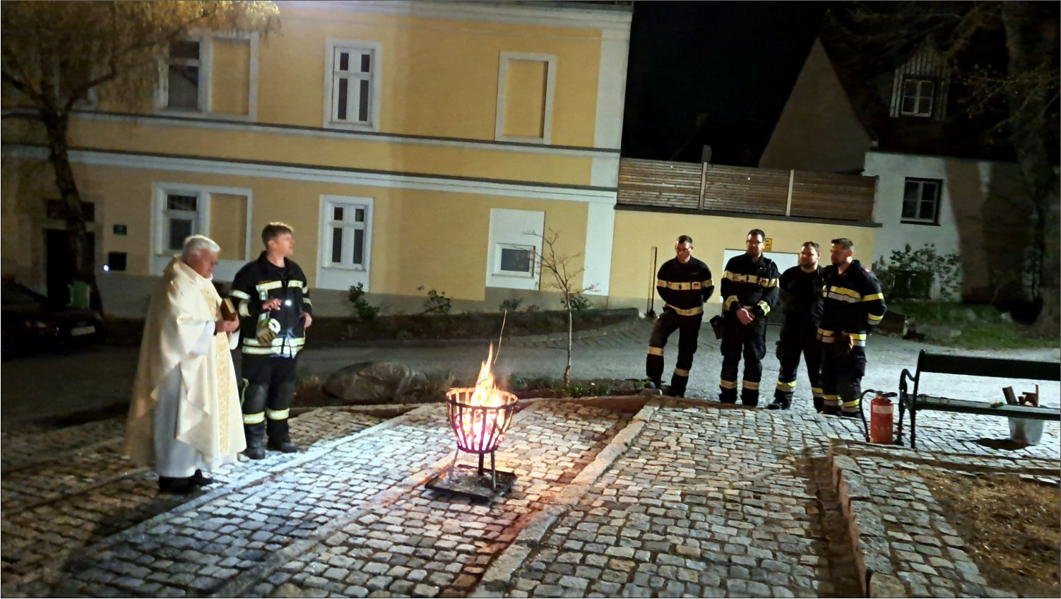Gemeinsame Brandsicherheitswache beim traditionellen Osterfeuer mit der